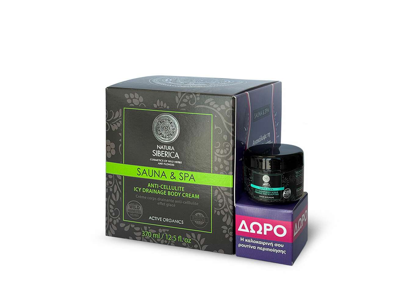 Η σειρά SAUNA & SPA έχει σχεδιαστεί ειδικά για την περιποίηση του δέρματος και των μαλλιών. Στη σάουνα, λόγω της αύξησης της θερμοκρασίας, το δέρμα αρχίζει να «αναπνέει» ενεργά , αυξάνοντας την ευαισθησία και την διαπερατότητα του, διαστέλλοντας και καθαρίζοντας τους πόρους, και ενεργοποιώντας την τόνωση του μεταβολισμού. Φυσικά ενεργά συστατικά που περιέχονται σε κάθε προϊόν της SAUNA & SPA αποκαλύπτουν πλήρως τις δυνατότητές τους, και τα αιθέρια έλαια έχουν αθροιστική δράση μέσω της αρωματοθεραπείας.Εάν θέλετε να ανορθώσετε την επιδερμίδα σας και να χάσετε το περιττό βάρος, το απολεπιστικό Icy Sugar με βιολογική αχίλλειά, έλαιο από σπόρους αρκτικού σμέουρου, άγρια μέντα και taimyr siversia θα σας βοηθήσει να αποκαταστήσετε τη σφριγηλότητα της επιδερμίδας σας και να χάσετε πόντους. Τα εκχυλίσματα βιολογικής αχίλλειάς, αρκεύθου, φιλιπένδουλας, άρνικας του βουνού και έλατου Σιβηρίας τονώνουν και απαλύνουν την επιδερμίδα, ενισχύουν την ανοσία της και αποκαθιστούν το φυσικό προστατευτικό στρώμα του δέρματος. Το έλαιο από σπόρους αρκτικού σμέουρου ενεργοποιεί τη σύνθεση κολλαγόνου και αναζωογονεί την επιδερμίδα. Η άγρια μέντα έχει τονωτική επίδραση και ενεργοποιεί τη μεταβολική διαδικασία στα κύτταρα της επιδερμίδας. Η άγρια αχίλλειά συμβάλλει στην τόνωση και την αναζωογόνηση της επιδερμίδας, καταπραΰνοντάς την σε βάθος.
