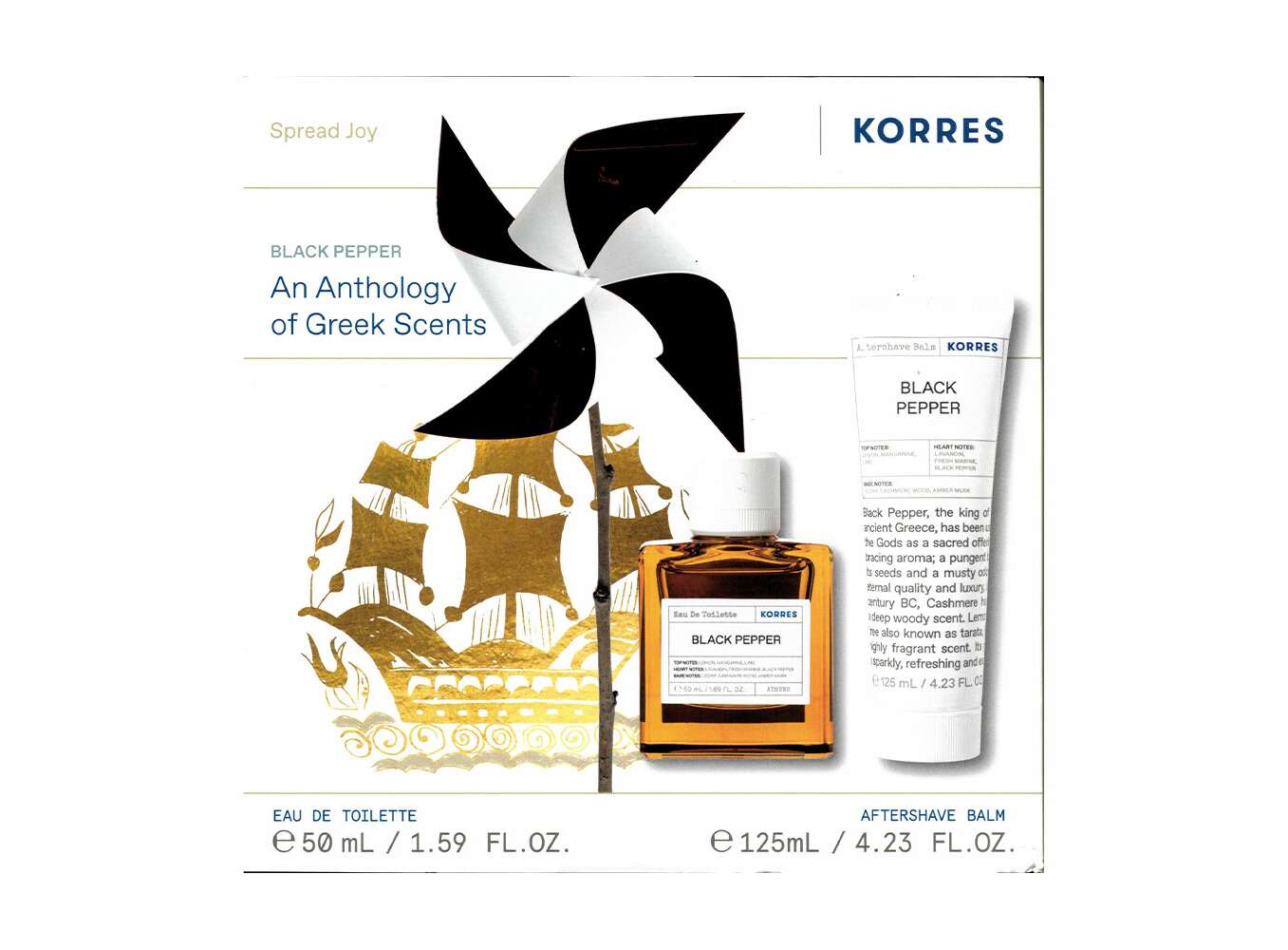 Το Korres Scents of Greece Special Gift Set Black Pepper είναι ένα ολοκληρωμένο σετ ανδρικής περιποίησης που συνδυάζει φυσική φροντίδα και έντονο, αισθησιακό άρωμα. Εμπνευσμένο από την ελληνική φύση και τη φρεσκάδα της Μεσογείου, περιλαμβάνει: