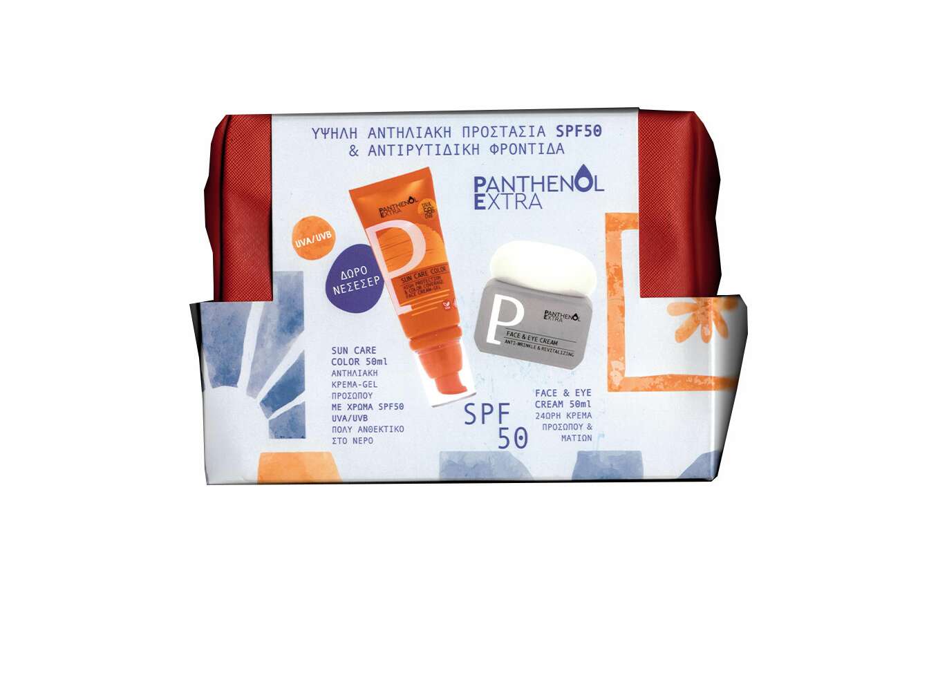 Το Panthenol Extra Summer Glow Routine είναι σετ περιποίησης προσώπου που συνδυάζει αντηλιακή προστασία με χρώμα SPF50 και καθημερινή αντιρυτιδική φροντίδα. Η αντηλιακή κρέμα-gel προσώπου με χρώμα προσφέρει ευρεία προστασία από την ηλιακή ακτινοβολία, χαρίζοντας ταυτόχρονα ομοιόμορφη όψη και φυσικό glow. Η 24ωρη κρέμα προσώπου και ματιών συμβάλλει στην ενυδάτωση, στη βελτίωση της υφής και στη μείωση της εμφάνισης ρυτίδων. Κατάλληλο για καθημερινή χρήση.