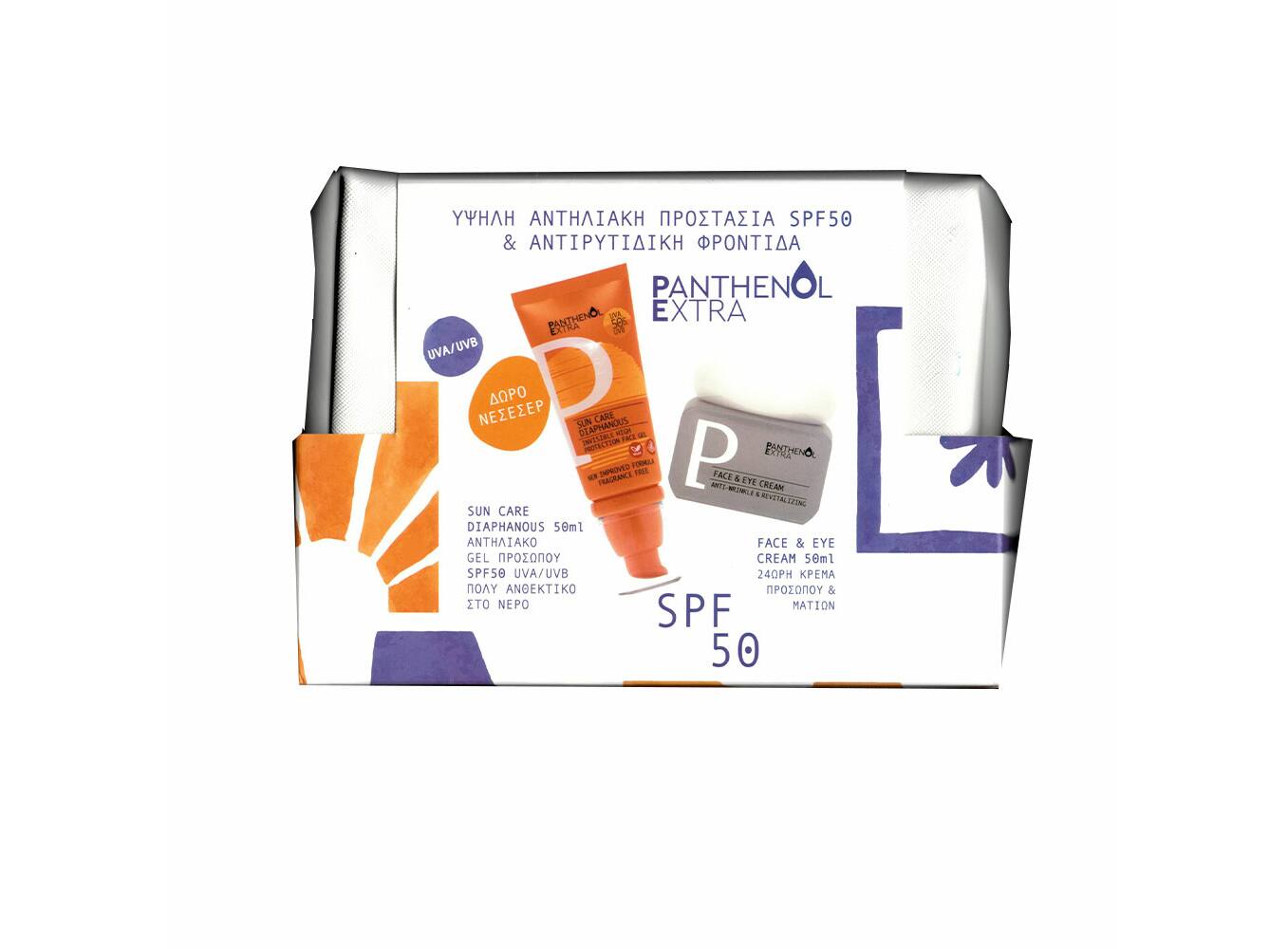 Το Panthenol Extra Glass Skin Routine είναι σετ περιποίησης προσώπου που συνδυάζει αντηλιακή προστασία SPF50 με καθημερινή αντιρυτιδική και ενυδατική φροντίδα. Το αντηλιακό gel προσώπου προσφέρει υψηλή προστασία από την ηλιακή ακτινοβολία και είναι πολύ ανθεκτικό στο νερό, ενώ η 24ωρη κρέμα προσώπου και ματιών συμβάλλει στην ενυδάτωση, τη βελτίωση της υφής και τη μείωση της εμφάνισης ρυτίδων. Ιδανικό για καθημερινή χρήση.