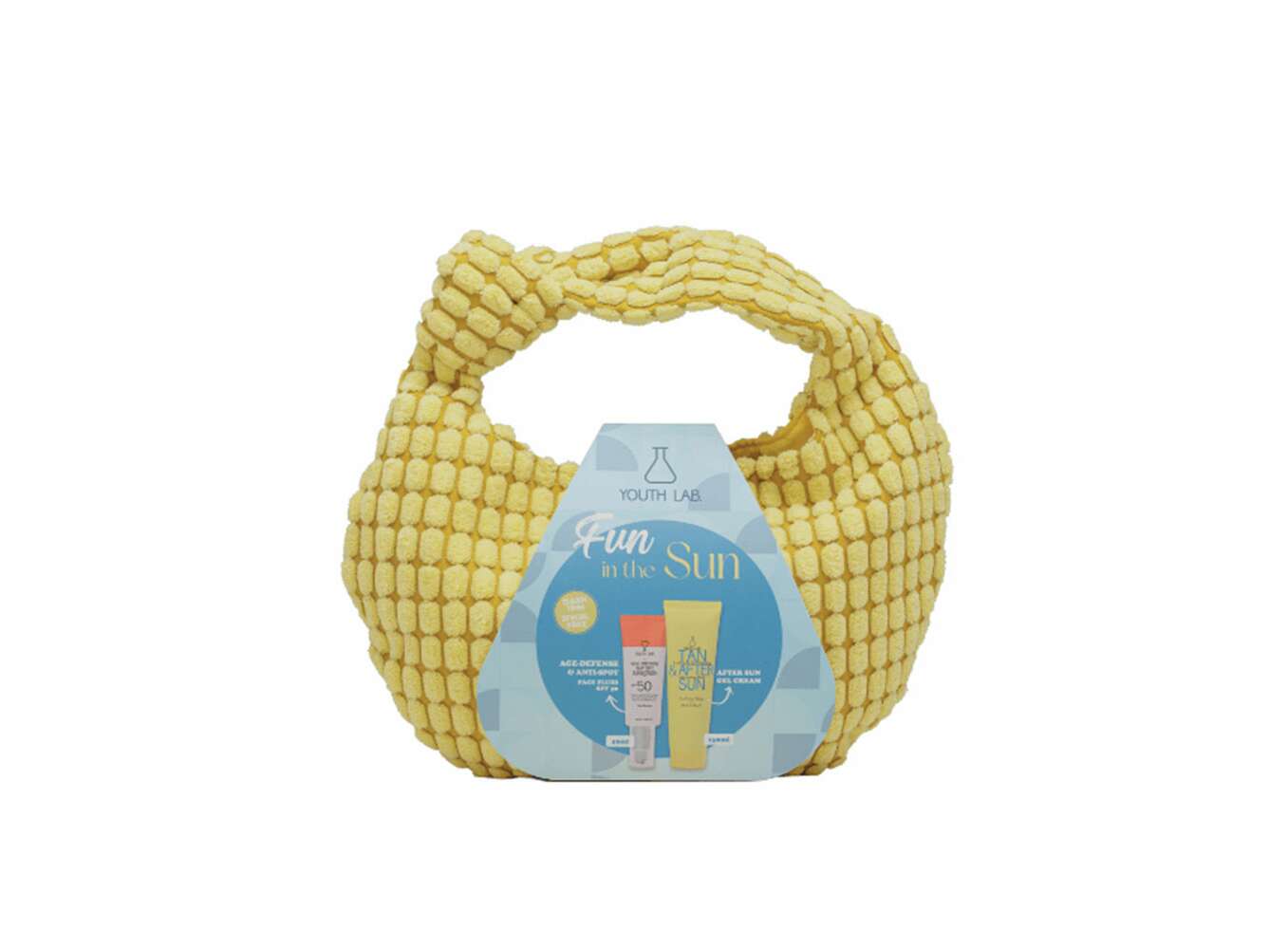 Limited edition καλοκαιρινό σετ με αντηλιακό προσώπου SPF50 και Tan & After Sun για ολοκληρωμένη προστασία και φροντίδα της επιδερμίδας πριν και μετά την έκθεση στον ήλιο. Προσφέρει πολύ υψηλή αντηλιακή προστασία, ενυδάτωση και ενίσχυση του φυσικού μαυρίσματος, σε συλλεκτικό καλοκαιρινό τσαντάκι YOUTH LAB.