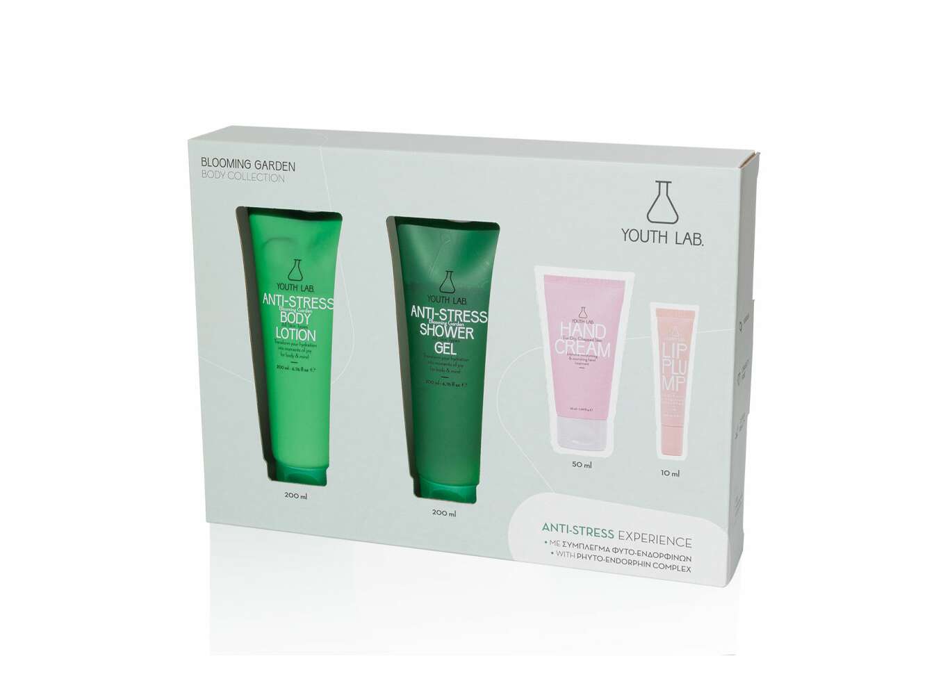 Το YOUTH LAB. Blooming Garden HARMONY BODY, HAND & LIP SET είναι το απόλυτο σετ περιποίησης για σώμα, χέρια και χείλη, με στόχο να χαρίσει αρμονία, ευεξία και φροντίδα από την κορυφή ως τα νύχια. Περιλαμβάνει το Blooming Garden Anti-Stress Shower Gel και τη Body Lotion, με φυτο-ενδορφίνες που μειώνουν τις συνέπειες του στρες στην επιδερμίδα, προστατεύουν το μικροβίωμα και ενισχύουν την ενυδάτωση, ενώ το λουλουδένιο άρωμα δημιουργεί αίσθηση χαλάρωσης και εκλεπτυσμένης θηλυκότητας. Η Hand Cream πλούσιας υφής καταπραΰνει άμεσα, θρέφει και προστατεύει ακόμα και το πιο ξηρό ή ταλαιπωρημένο δέρμα, ενώ το Lip Plump Nude λειαίνει, δίνει φυσικό όγκο και λάμψη στα χείλη με διάρκεια, χωρίς να αφήνει κολλώδη αίσθηση.