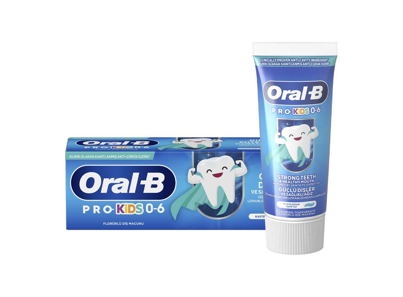 Η οδοντόκρεμα Oral-B Pro Kids έχει σχεδιαστεί ειδικά για παιδιά έως 6 ετών. Έχει σχεδιαστεί σε συνεργασία με οδοντιάτρους για να βοηθά στην πρόληψη της τερηδόνας προστατεύοντας τα δόντια από καθημερινά οξέα και σάκχαρα. Περιέχει κατάλληλο για την ηλικία επίπεδο φθορίου και διατίθεται σε απαλή γεύση μέντας.