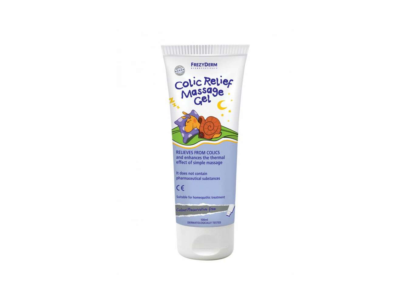 Άνυδρο gel Frezyderm που ανακουφίζει άμεσα από τους κολικούς. Με έναν προσεκτικά επιλεγμένο συνδυασμό από γλυκερίνη και μαλακτικά έλαια αμυγδάλου, καλέντουλας και χαμομηλιού που δημιουργεί ένα απαλό ενυδατικό φιλμ το οποίο σε συνδυασμό με ήπιο μασάζ στην κοιλίτσα του βρέφους, ενισχύει το αποτέλεσμα της απλής τριβής για ταχύτερη ανακούφιση.