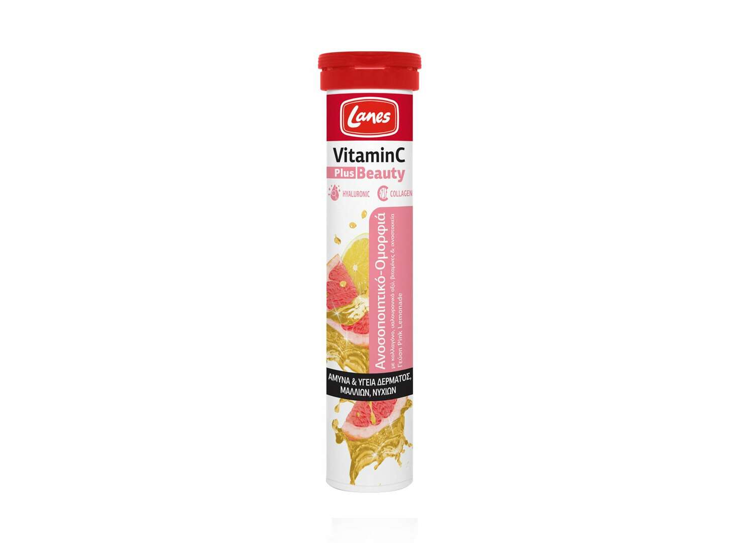Η Lanes Vitamin C Plus Beauty είναι εμπλουτισμένη με επιλεγμένα διατροφικά συστατικά όπως είναι το κολλαγόνο και το υαλουρονικό οξύ και αποτελεί την ιδανική επιλογή για την φυσιολογική λειτουργία του ανοσοποιητικού συστήματος και, την διατήρηση της φυσιολογικής κατάστασης του δέρματος, των μαλλιών, των νυχιών & των δοντιών.